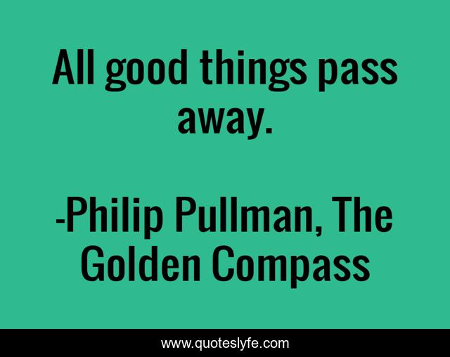 "Philip Pullman, The Golden Compass Quotes." Quoteslyfe.com, 2025. Sat. 06 Dec. 2025. <https://www.quoteslyfe.com/quote/All-good-things-pass-away-20884>.