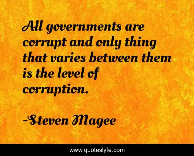 "Steven Magee Quotes." Quoteslyfe.com, 2025. Fri. 05 Dec. 2025. <https://www.quoteslyfe.com/quote/All-governments-are-corrupt-and-only-thing-239349>.