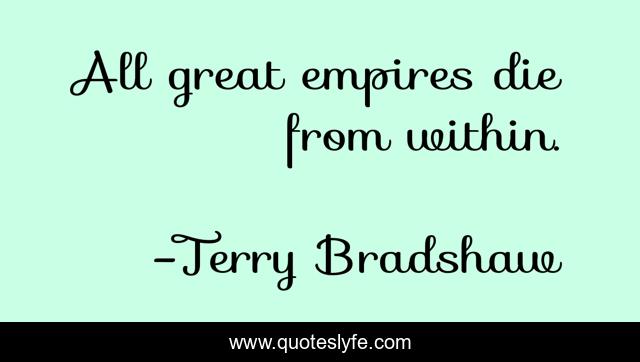 This page presents the quote "All great empires die from within.". Author of this quote is Terry Bradshaw. This quote is about empires, die, within,.