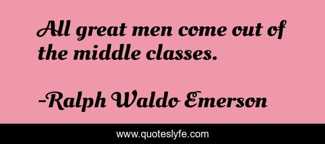 This page presents the quote "All great men come out of the middle classes.". Author of this quote is Ralph Waldo Emerson. .