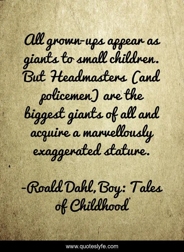 "Roald Dahl, Boy: Tales of Childhood Quotes." Quoteslyfe.com, 2025. Fri. 05 Dec. 2025. <https://www.quoteslyfe.com/quote/All-grown-ups-appear-as-giants-to-208615>.