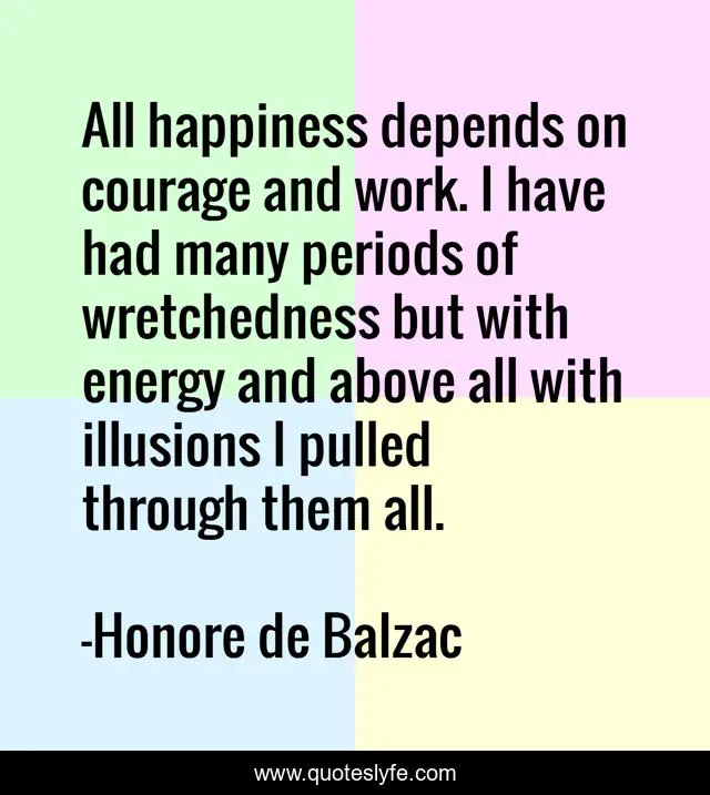 This page presents the quote "All happiness depends on courage and work. I have had many periods of wretchedness but with energy and above all with illusions I pulled through them all.". Author of this quote is Honore de Balzac. .