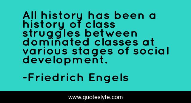 This page presents the quote "All history has been a history of class struggles between dominated classes at various stages of social development.". Author of this quote is Friedrich Engels. This quote is about development, class, social,.