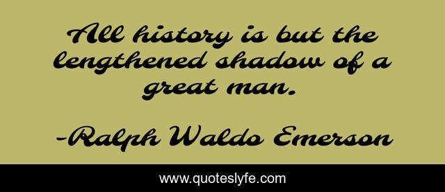 This page presents the quote "All history is but the lengthened shadow of a great man.". Author of this quote is Ralph Waldo Emerson. This quote is about historians, history,.