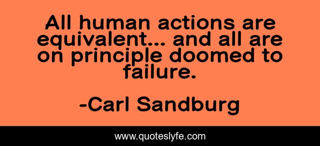 This page presents the quote "All human actions are equivalent... and all are on principle doomed to failure.". Author of this quote is Carl Sandburg. This quote is about human, actions, principle,.