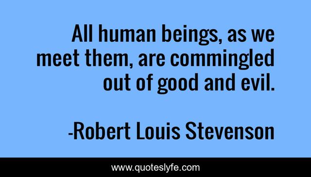 This page presents the quote "All human beings, as we meet them, are commingled out of good and evil.". Author of this quote is Robert Louis Stevenson. .
