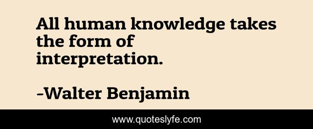 This page presents the quote "All human knowledge takes the form of interpretation.". Author of this quote is Walter Benjamin. This quote is about interpretation, human, form,.