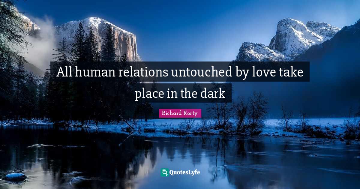 This page presents the quote "All human relations untouched by love take place in the dark". Author of this quote is Richard Rorty. This quote is about love, humans, human relations, relation, dark,.