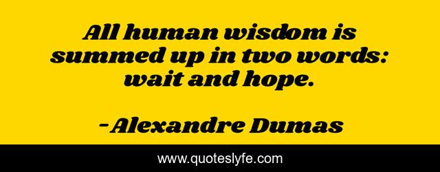 This page presents the quote "All human wisdom is summed up in two words: wait and hope.". Author of this quote is Alexandre Dumas. This quote is about days, difficult,.