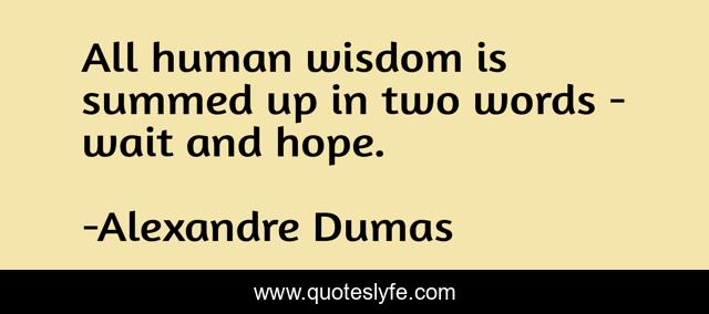 This page presents the quote "All human wisdom is summed up in two words - wait and hope.". Author of this quote is Alexandre Dumas. .
