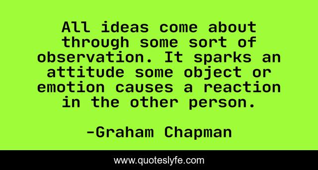 This page presents the quote "All ideas come about through some sort of observation. It sparks an attitude some object or emotion causes a reaction in the other person.". Author of this quote is Graham Chapman. This quote is about emotion, ideas, observation,.