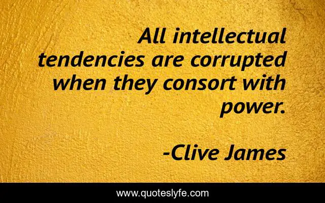 This page presents the quote "All intellectual tendencies are corrupted when they consort with power.". Author of this quote is Clive James. This quote is about ideology, politics, corruption, power,.