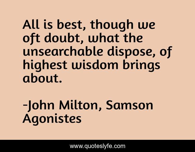 "John Milton, Samson Agonistes Quotes." Quoteslyfe.com, 2025. Fri. 05 Dec. 2025. <https://www.quoteslyfe.com/quote/All-is-best-though-we-oft-doubt-111558>.