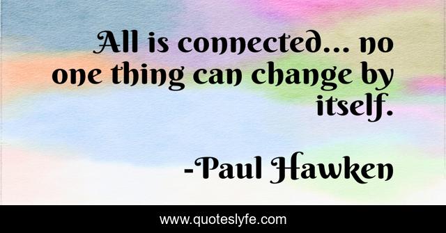 This page presents the quote "All is connected... no one thing can change by itself.". Author of this quote is Paul Hawken. This quote is about environmental, connected,.