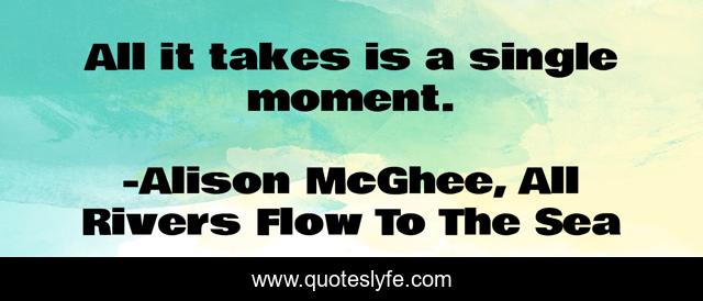 This page presents the quote "All it takes is a single moment.". Author of this quote is Alison McGhee, All Rivers Flow To The Sea. .