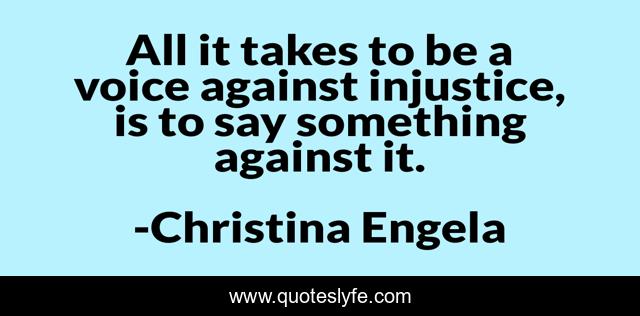 This page presents the quote "All it takes to be a voice against injustice, is to say something against it.". Author of this quote is Christina Engela. This quote is about voice, injustice, against-it,.
