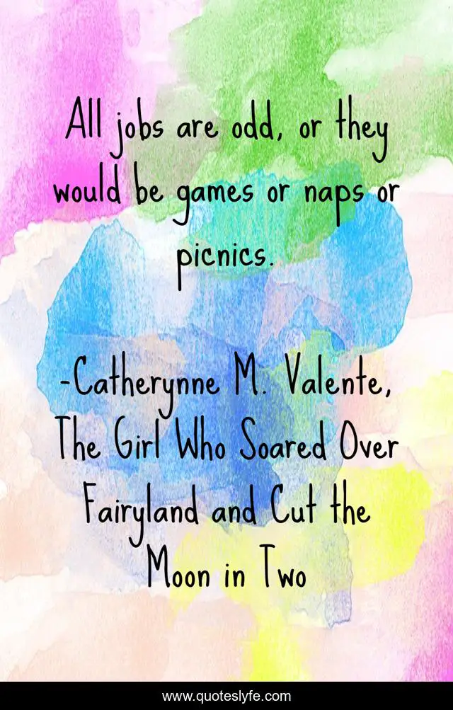 This page presents the quote "All jobs are odd, or they would be games or naps or picnics.". Author of this quote is Catherynne M. Valente, The Girl Who Soared Over Fairyland and Cut the Moon in Two. This quote is about fun, work,.