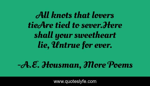 "A.E. Housman, More Poems Quotes." Quoteslyfe.com, 2025. Mon. 08 Dec. 2025. <https://www.quoteslyfe.com/quote/All-knots-that-lovers-tieAre-tied-to-171567>.