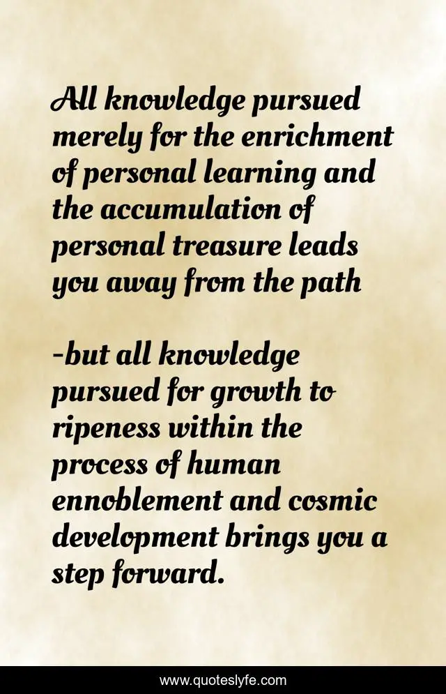 "but all knowledge pursued for growth to ripeness within the process of human ennoblement and cosmic development brings you a step forward. Quotes." Quoteslyfe.com, 2025. Sat. 06 Dec. 2025. <https://www.quoteslyfe.com/quote/All-knowledge-pursued-merely-for-the-enrichment-172040>.