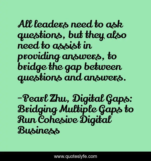 "Pearl Zhu, Digital Gaps: Bridging Multiple Gaps to Run Cohesive Digital Business Quotes." Quoteslyfe.com, 2025. Sat. 06 Dec. 2025. <https://www.quoteslyfe.com/quote/All-leaders-need-to-ask-questions-but-64394>.