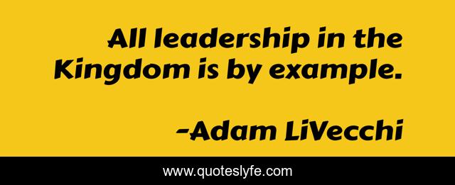 This page presents the quote "All leadership in the Kingdom is by example.". Author of this quote is Adam LiVecchi. This quote is about kingdom, kingdom-of-god, leadership, lead,.