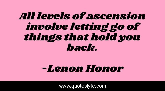 This page presents the quote "All levels of ascension involve letting go of things that hold you back.". Author of this quote is Lenon Honor. This quote is about ascension, growing, personal-growth,.