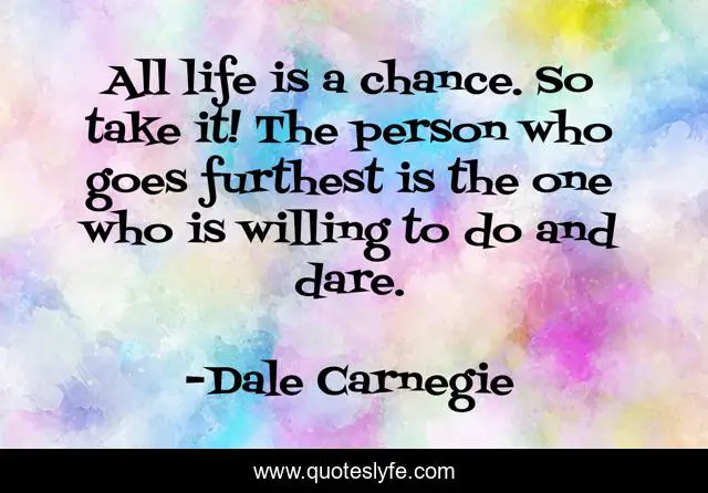 This page presents the quote "All life is a chance. So take it! The person who goes furthest is the one who is willing to do and dare.". Author of this quote is Dale Carnegie. .