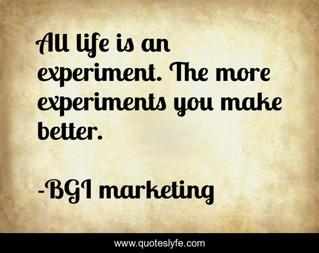 This page presents the quote "All life is an experiment. The more experiments you make better.". Author of this quote is BGI marketing. .