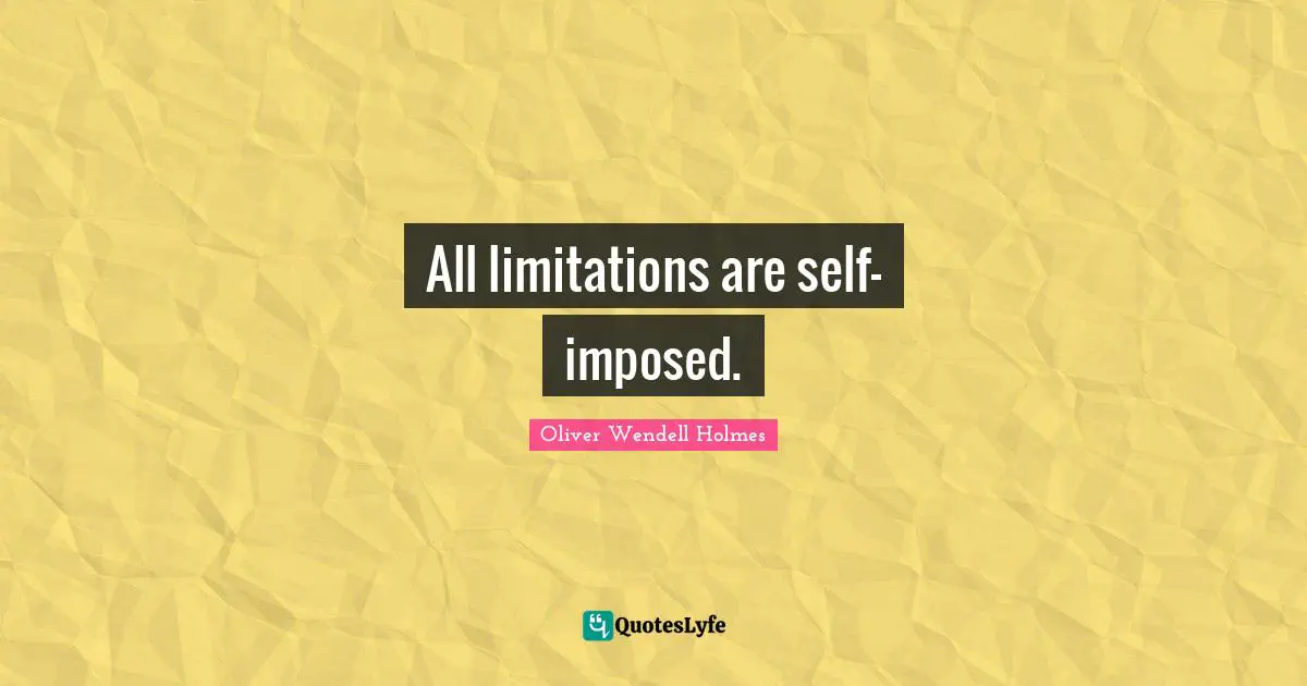 This page presents the quote "All limitations are self-imposed.". Author of this quote is Oliver Wendell Holmes. This quote is about limitation, motivational,.