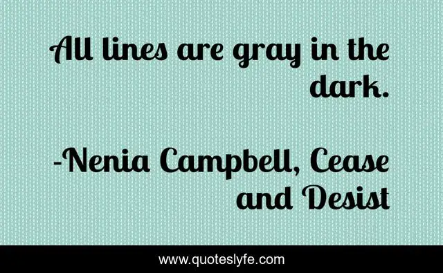 "Nenia Campbell, Cease and Desist Quotes." Quoteslyfe.com, 2025. Fri. 05 Dec. 2025. <https://www.quoteslyfe.com/quote/All-lines-are-gray-in-the-dark-164071>.