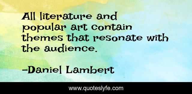 This page presents the quote "All literature and popular art contain themes that resonate with the audience.". Author of this quote is Daniel Lambert. This quote is about literature, art,.