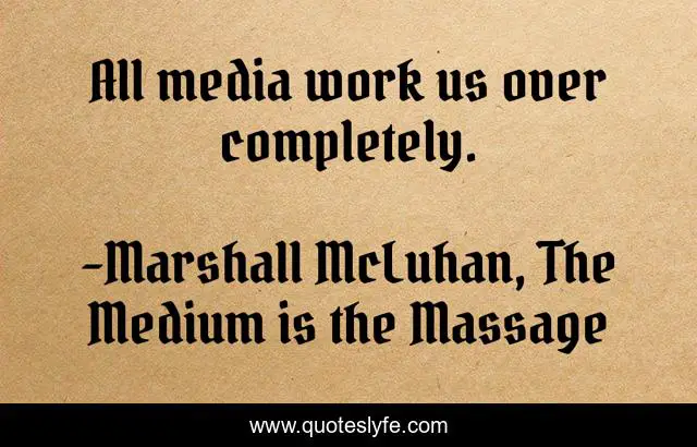 "Marshall McLuhan, The Medium is the Massage Quotes." Quoteslyfe.com, 2025. Tue. 09 Dec. 2025. <https://www.quoteslyfe.com/quote/All-media-work-us-over-completely-233561>.