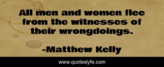 This page presents the quote "All men and women flee from the witnesses of their wrongdoings.". Author of this quote is Matthew Kelly. This quote is about failure, intimacy, shame,.