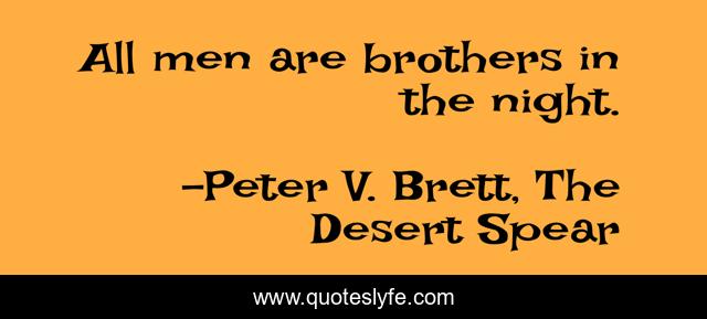 "Peter V. Brett, The Desert Spear Quotes." Quoteslyfe.com, 2025. Mon. 08 Dec. 2025. <https://www.quoteslyfe.com/quote/All-men-are-brothers-in-the-night-127599>.