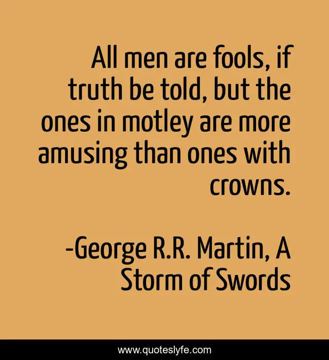 This page presents the quote "All men are fools, if truth be told, but the ones in motley are more amusing than ones with crowns.". Author of this quote is George R.R. Martin, A Storm of Swords. .