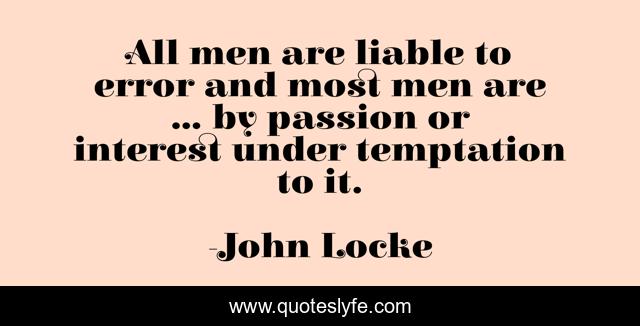 This page presents the quote "All men are liable to error and most men are ... by passion or interest under temptation to it.". Author of this quote is John Locke. This quote is about failures, mistakes,.