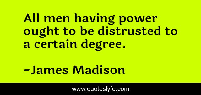 This page presents the quote "All men having power ought to be distrusted to a certain degree.". Author of this quote is James Madison. This quote is about certain, men, degree,.