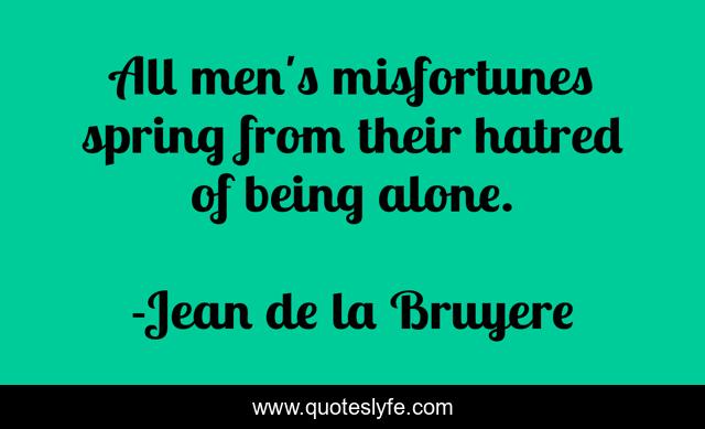 This page presents the quote "All men's misfortunes spring from their hatred of being alone.". Author of this quote is Jean de la Bruyere. This quote is about spring, men, being alone,.