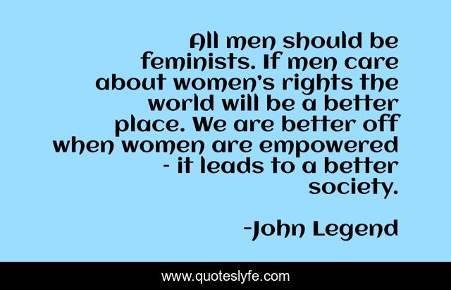 This page presents the quote "All men should be feminists. If men care about women’s rights the world will be a better place. We are better off when women are empowered – it leads to a better society.". Author of this quote is John Legend. This quote is about human-rights, patriarchy, feminism, women,.