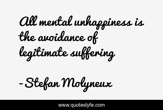 "Stefan Molyneux Quotes." Quoteslyfe.com, 2025. Mon. 08 Dec. 2025. <https://www.quoteslyfe.com/quote/All-mental-unhappiness-is-the-avoidance-of-103871>.