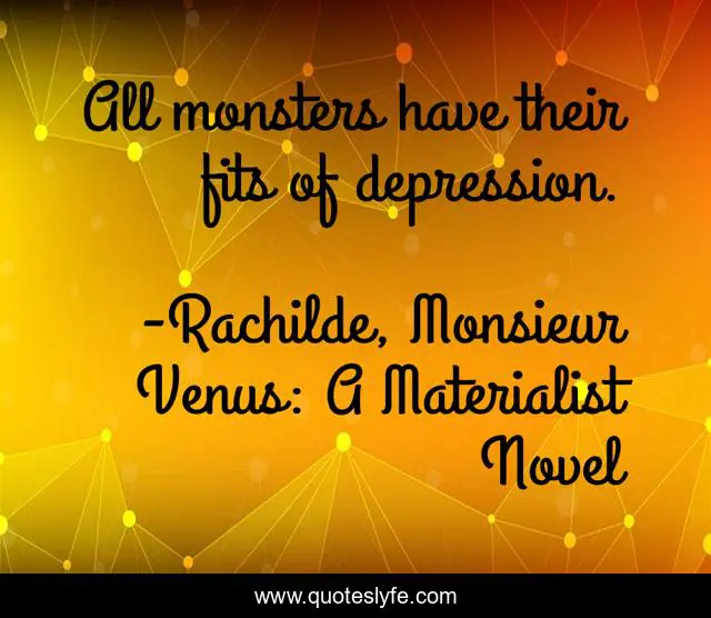 "Rachilde, Monsieur Venus: A Materialist Novel Quotes." Quoteslyfe.com, 2025. Sat. 06 Dec. 2025. <https://www.quoteslyfe.com/quote/All-monsters-have-their-fits-of-depression-113652>.