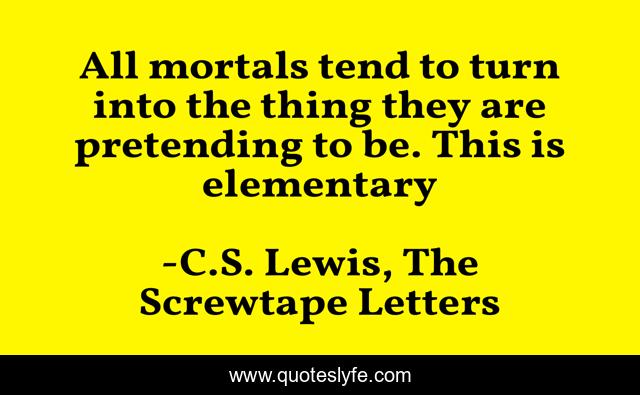 This page presents the quote "All mortals tend to turn into the thing they are pretending to be. This is elementary". Author of this quote is C.S. Lewis, The Screwtape Letters. This quote is about humans, tendencies, psychology,.