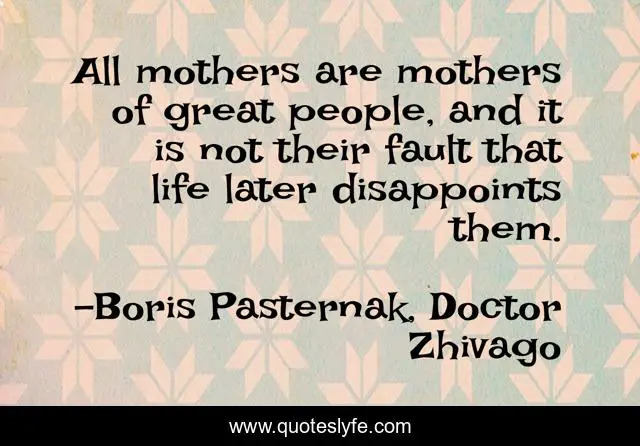 This page presents the quote "All mothers are mothers of great people, and it is not their fault that life later disappoints them.". Author of this quote is Boris Pasternak, Doctor Zhivago. .