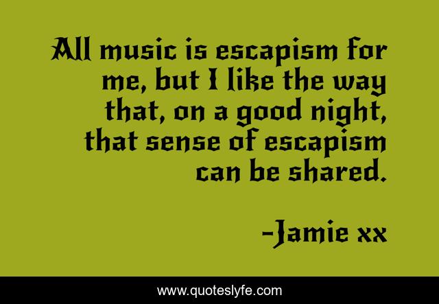 This page presents the quote "All music is escapism for me, but I like the way that, on a good night, that sense of escapism can be shared.". Author of this quote is Jamie xx. This quote is about good, good night, night,.