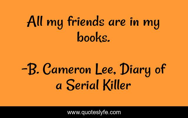 "B. Cameron Lee, Diary of a Serial Killer Quotes." Quoteslyfe.com, 2025. Mon. 08 Dec. 2025. <https://www.quoteslyfe.com/quote/All-my-friends-are-in-my-books-127292>.