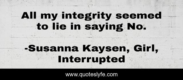 This page presents the quote "All my integrity seemed to lie in saying No.". Author of this quote is Susanna Kaysen, Girl, Interrupted. .