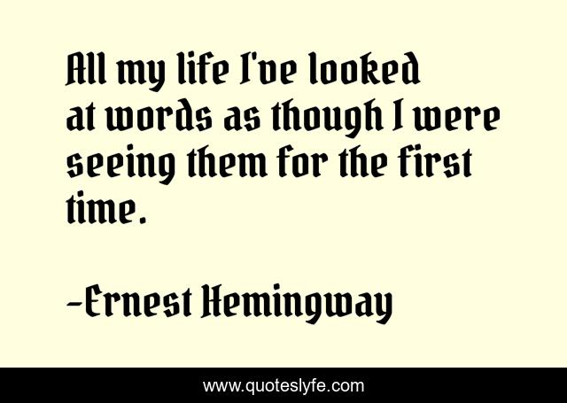 This page presents the quote "All my life I've looked at words as though I were seeing them for the first time.". Author of this quote is Ernest Hemingway. .