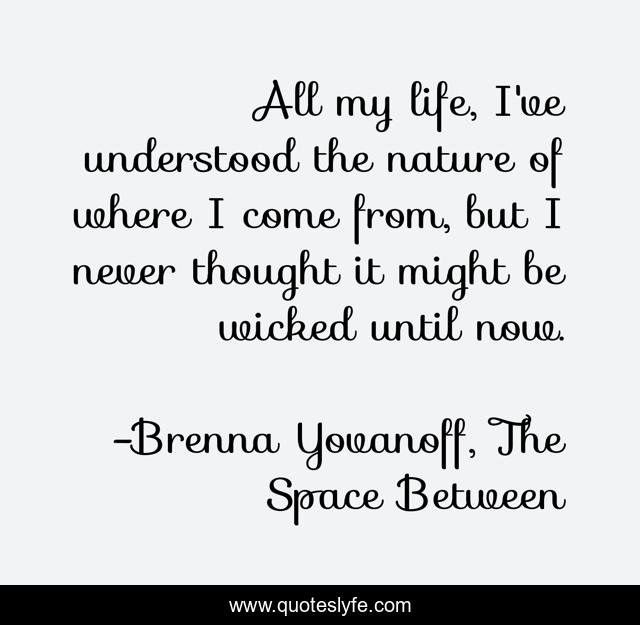 This page presents the quote "All my life, I've understood the nature of where I come from, but I never thought it might be wicked until now.". Author of this quote is Brenna Yovanoff, The Space Between. This quote is about nature-of-man, good-and-evil, demons, wicked,.