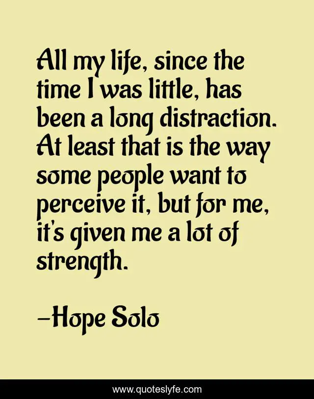 This page presents the quote "All my life, since the time I was little, has been a long distraction. At least that is the way some people want to perceive it, but for me, it's given me a lot of strength.". Author of this quote is Hope Solo. This quote is about me, life, time,.