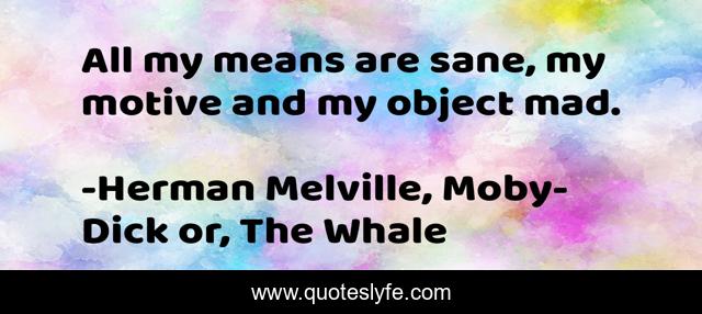 "Herman Melville, Moby-Dick or, The Whale Quotes." Quoteslyfe.com, 2025. Sat. 06 Dec. 2025. <https://www.quoteslyfe.com/quote/All-my-means-are-sane-my-motive-221097>.
